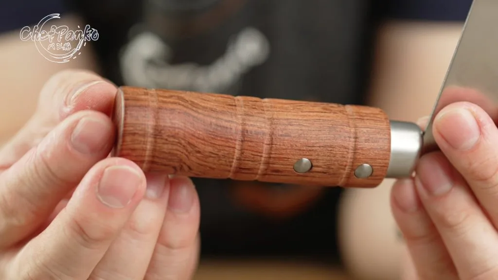 The more I used the knife, the more I liked the handle, it grew on me. The round, thicker shape feels comfortable and provides a sturdy, non-slip grip.