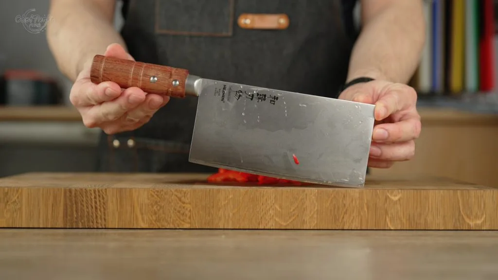 To clarify any confusion, this Chinese vegetable cleaver is not a bone cleaver. It is known as a CaiDao, or vegetable knife, also referred to as a slicer or slicing knife. In this review, I will refer to it as a Chinese Vegetable Cleaver. So, without further ado, let’s dive into the review.
